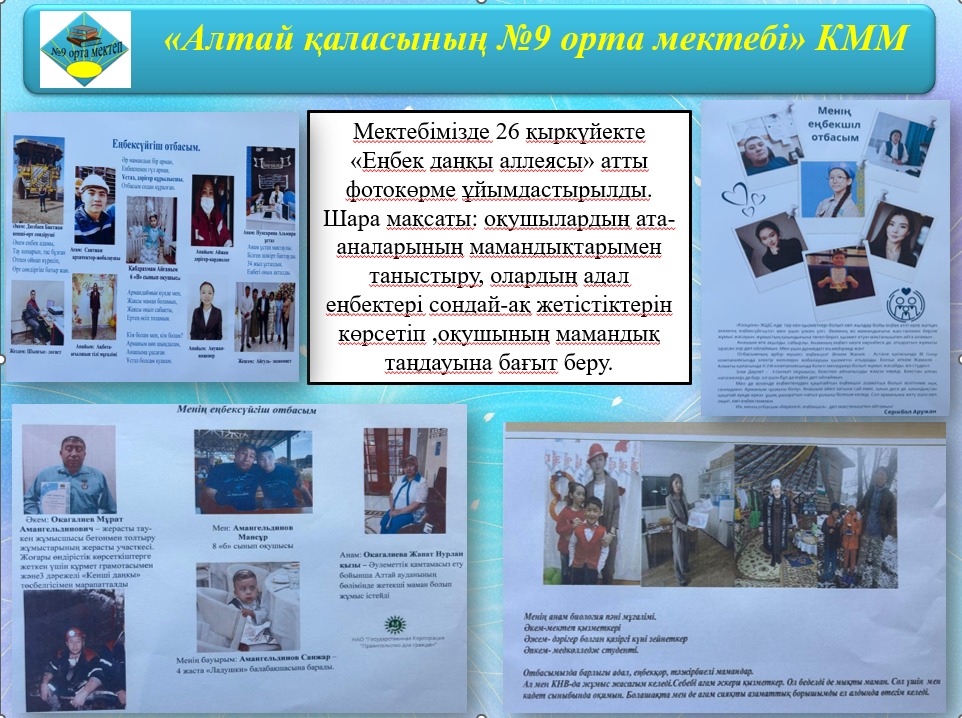 26 қыркүйекте «Еңбек даңқы аллеясы» атты фотокөрме ұйымдастырылды